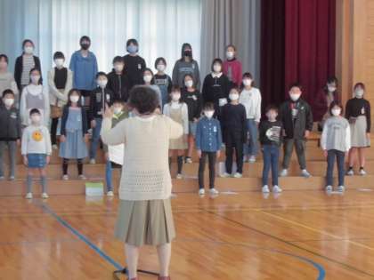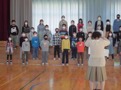 明日行われる区域連合音楽会で発表する合唱の練習を行いました。入場、アナウンス、退場等を本番と同じ流れでやってみました。明日、オーバード・ホールで素晴らしい歌声を響かせることを期待しています。