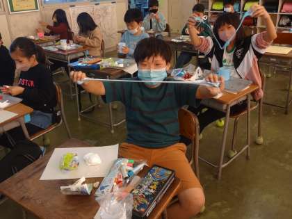紙粘土はよく伸びるので、棒や鉛筆等を使って、こねる・伸ばす・平らにする活動は楽しいです。