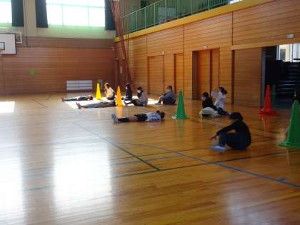体育座りや、寝そべった状態から、スタート合図を聞いて、素早くダッシュしました。