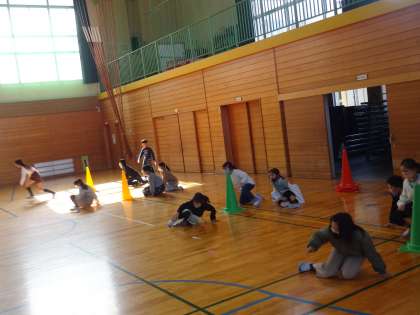 写真は、「変身ダッシュの練習」の様子です。