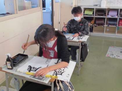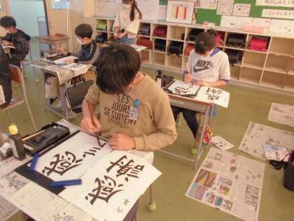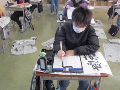 「感謝」の清書を書きました。3つの部分で組み立てられている「謝」を特に注意して書きました。2回目の清書でしたが、前回よりも上手になっていました。