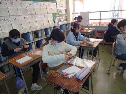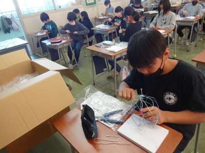 針金の形をいろいろ変えたり、組み合わせたりしながら、面白い形が次々作られていきます。針金の色も意識しています。