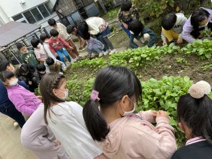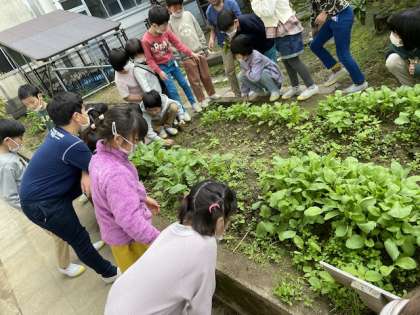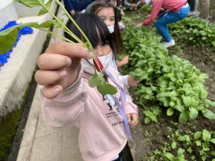10月にまいた二十日大根やラディッシュがたくさん発芽しました。より大きく育つように元気そうなものを残して間引きしました。