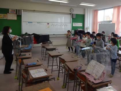 みんなで「山のポルカ」の合奏練習をしました。実は、来週のさわやか集会で発表する予定です。