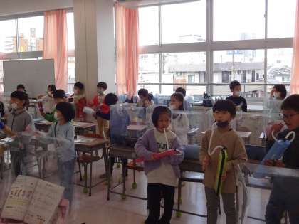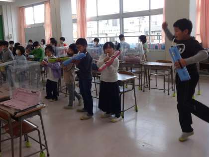 これまで練習してきた鍵盤ハーモニカに加えて、自分で作った楽器も使います。手作り楽器でリズムを取ることで、演奏に深みが出るとともに演奏者の気持ちものりのりになります。