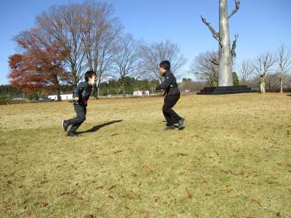 太閤山ランドでは、大きなアスレチックで遊びました。芝生広場では、しっぽとり鬼ごっこをしたり、マイムマイムを踊ったりして存分に体を動かしました。お昼は、赤く染まった紅葉の下で仲良くお弁当を食べました。