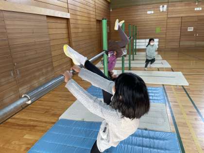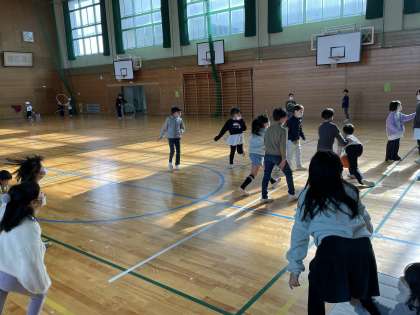 今日から体育館に鉄棒が設置されたので、早速遊ぶ様子が見られました。また、2年生ながらバスケットボールに興味をもち、みんなで遊んでいます。ルールがまだまだ難しいですが、楽しそうに活動しています。