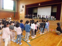 体育館のステージで練習をしているのは、「なかよし」という曲です。