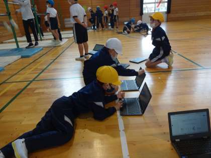 今日は、クロームブックを持ち込み、どの技ができると「銅スター」「銀スター」「金スター」をもらえるか確認しながら取り組みました。技ができたら、画面に触れて○を付けました。