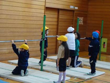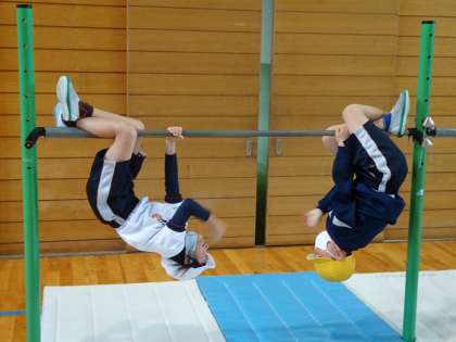鉄棒を行いました。かなり慣れてきて、新しい技にも積極的に挑戦しました。順番を守って安全に取り組んでいたところもよかったです。
