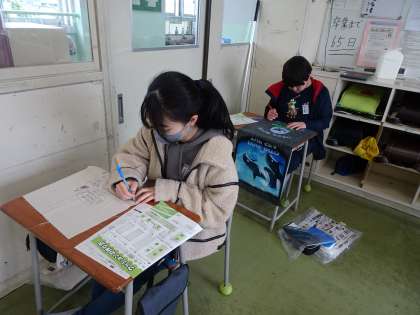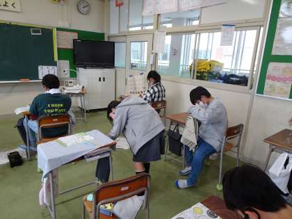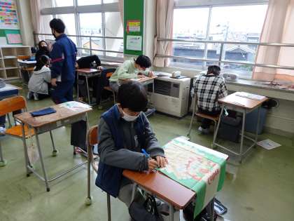 クッションを製作しています。今日は、ミシンで縫うところにチャコえんぴつで印を付けました。来週は、ミシンを使って縫います。