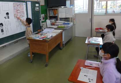 縦8ます横8ます、合計64ますの表には、ぎっしり平仮名が書かれています。その中に隠れている言葉を見付けます。どのように縦、横、斜めに読めば言葉になるのかを一生懸命に探しました。