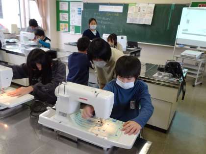 安全なミシンの使い方を学習するために、初めて実際にミシンを扱いました。今日は、初めてということで、空縫いをしました。また、ボランティアティーチャーとして、3名の保護者の方に来ていただき、丁寧に子供たちにミシンの正しい使い方を教えていただきました。おかげで、けがをすることなく安全に学ぶことができました。ありがとうございました。