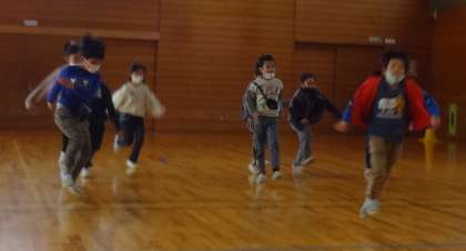 サンサンタイム(業間休憩)に、体育館で特別なやなトレ(体力つくり活動)を行いました。今日は低学年の日です。