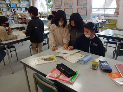 図書室へ行き、紹介したい本を選びました。紹介するので、タイトルだけ見て選ぶわけにはいきません。話の組み立てや内容を読み取り、本を選びました。