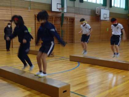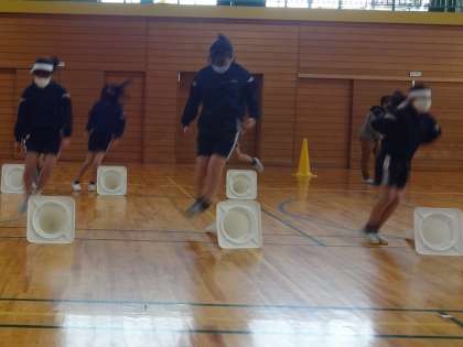 6年生の頑張る様子を見ていた5年生は、運動意欲を高めて、40秒間 × 3種類の運動メニュー × 2ローテーションに挑戦しました。