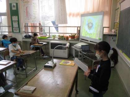 昨日選んだ民話や昔話を、紹介しました。題名やどこの国のお話か、あらすじ、心に残った場面等を紹介すると、「おもしろそう!」「ちょっとこわいなあ」「読んでみたい!」という感想が聞かれ、関心を寄せていることが伝わってきました。