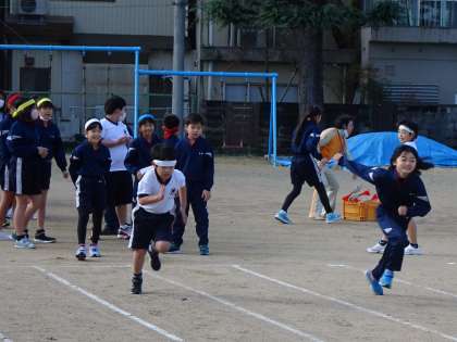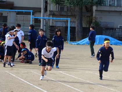 12月とは思えないほど暖かい日差しの中、50m走のタイムを計りました。春に計測したときから、どれだけタイムが伸びているか楽しみです。4年生は、全員全力で走り切りました。