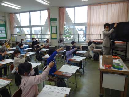 それぞれの文字を書くときの留意点を確認した後、1文字ずつ練習しました。