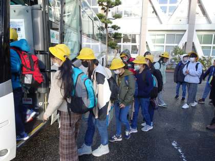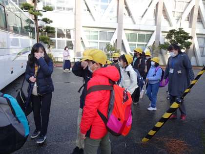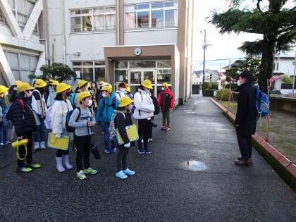 5年生は、校外学習で「イタイイタイ病資料館」と「四季防災館」に行きます。寒いですが、元気な挨拶で出発しました。たくさんのことを学んできます。