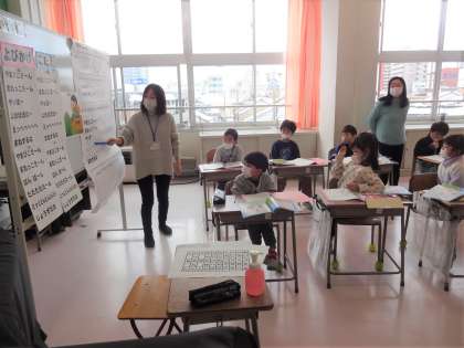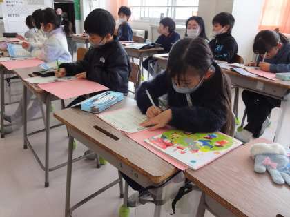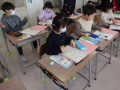 子供たちは、歌詞の決められた文字数に合わせて、一生懸命に考えました。自分で歌詞を考えるのも楽しそうです。
