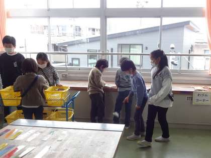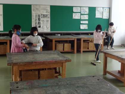先日、「おもちゃ作り」のまとめとして図工室でゲーム大会を行いました。そこで、今日は、図工室を掃除したり使った物の後片付けをしたりしました。