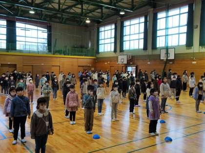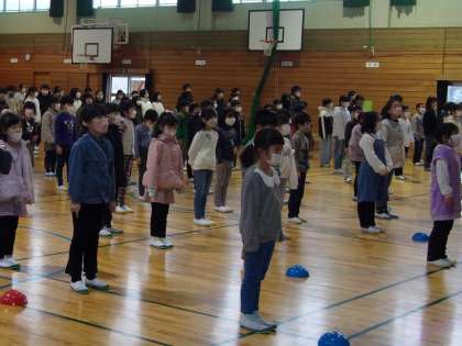 全員で新年の挨拶をした後、校長先生は、3学期に頑張ってほしいこととして、「自分より上の学年のよいところを見て学ぶ」「下の学年に手本を見せる」と話されました。