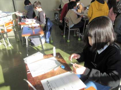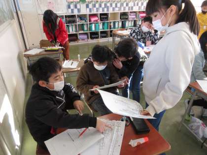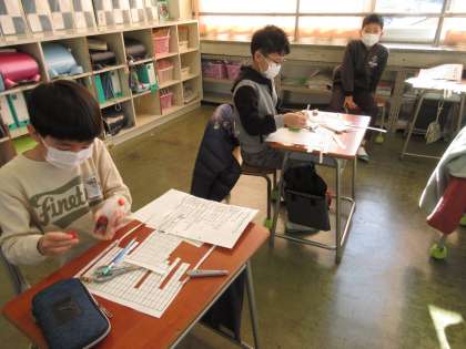 今日は、一人一人が、クラスメイト全員のよいところを書き、切り取って渡しました。