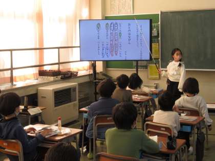 詩「おとの はなびら」を音読して、詩の工夫や様子を考えました。
