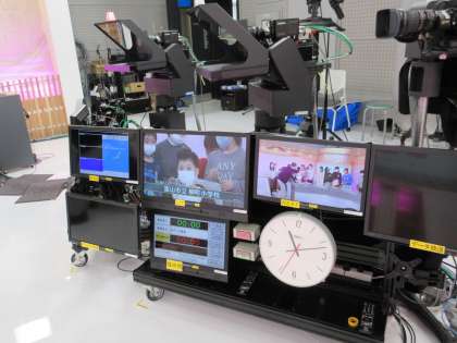 アナウンサーの前にはモニターがあり、自分の姿を確認できます。