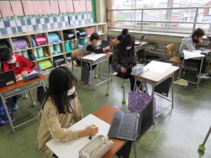 木版画の下絵を描き始めました。題材は、天然記念物または絶滅危惧種の動物です。クロームブックを使って動物を調べ、その中から選びました。
