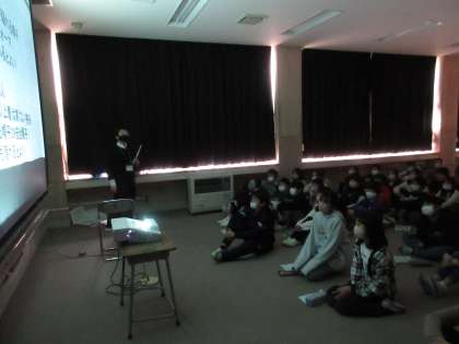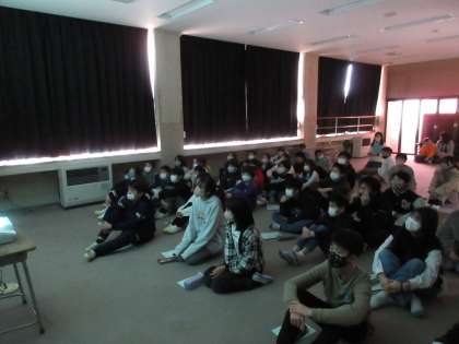今日は、5・6年生合同で、スキー学習を安全に楽しく行うための話をしました。