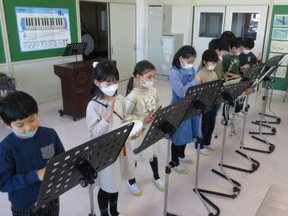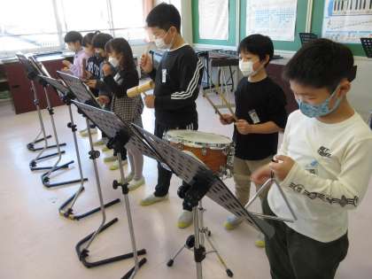 「かぼちゃ」の歌に合わせて、打楽器演奏しました。