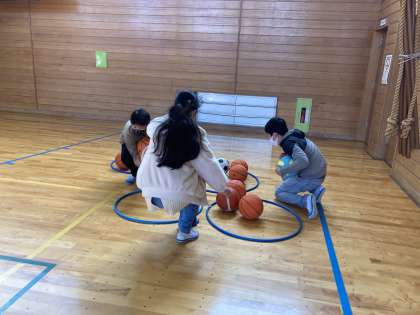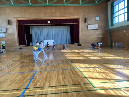 今日は、色団で協力してボールを賢く運んだり、奪ったりするレクリエーションを行いました。息が上がるほど全力で走り、冬ですが汗をかきました。