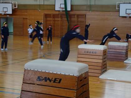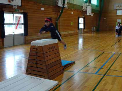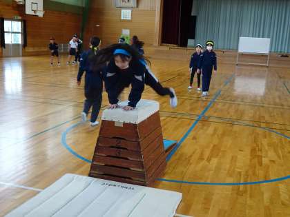 跳び箱運動をしました。4年生は上手になってきており、自信をもって取り組んでいます。笑顔を見せながら楽しそうに跳んでいます。