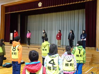 5・6年生は、スキー学習です。体育館で出発式を行い、引率していただく先生方にお願いしますの挨拶をしてからバスに乗り、立山山麓スキー場に出発しました。