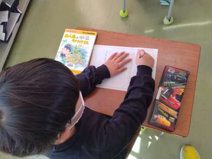 友達に紹介したい本を読んで、登場人物と感想を「おはなしカード」に書いています。
