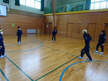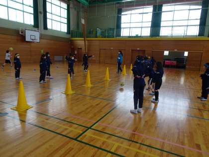 プレルボールを行いました。ボールをバウンドさせて打ち合うことにも慣れてきたので、今日はゲーム形式にも挑戦しました。
