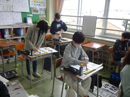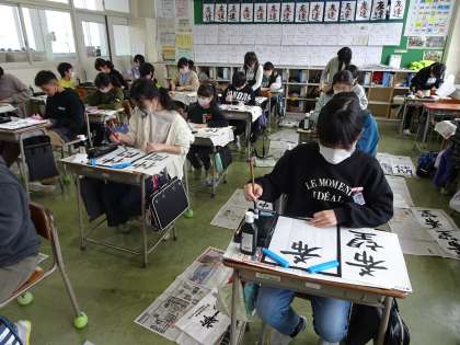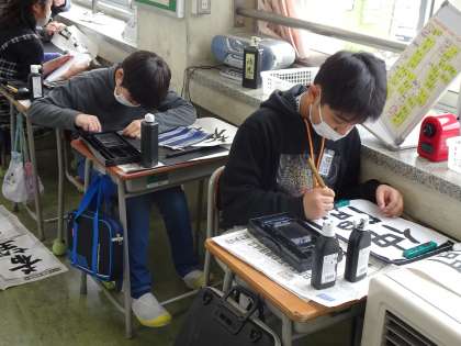 今日は、「希望」と「仲間」を書きました。5年生らしく静かに集中して書きました。みんな上手になっています。来週も同じ字を書いて、いくつかの作品を卒業週間に廊下に掲示する予定です。