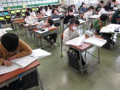 「自分発見!」の学習で、インタビューしたことをまとめて、原稿作りをしています。