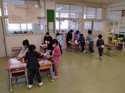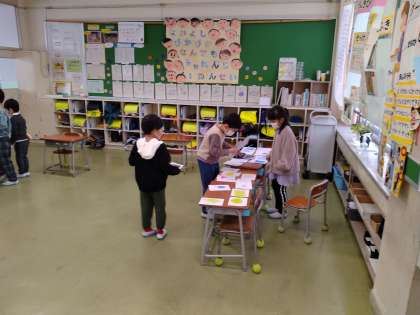 練習を終えた後、ものの名前を集めて、みんなでお店を開きました。