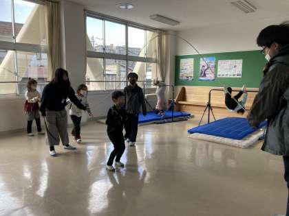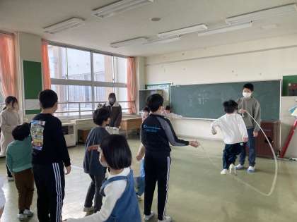 にこにこタイムは、普段の昼休みより時間が長いです。その時間を、なわとび大会に向けて、6年生を中心に練習に取り組みました。テープを貼ったり、声をかけたりしながら優しく教えている姿が印象的でした。
