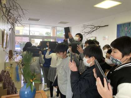 柳町小学校の歴史を感じるところをクロームブックで撮影しました。歴代の校長先生の写真、トロフィーなど、普段は通り過ぎるところで立ち止まって見てみると、新たな発見がありました。