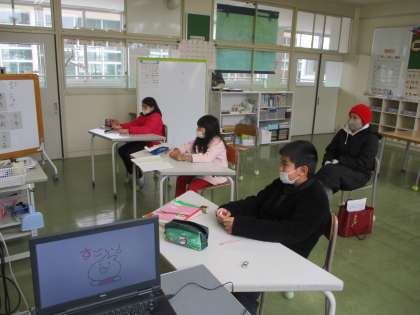 国際教室では、漢字の音と訓を使って文づくりをしました。