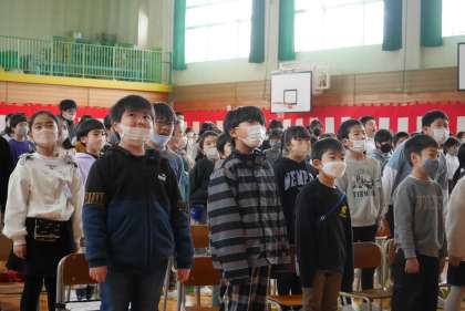 創校150周年記念式の締めくくりとして、全員で校歌を斉唱しました。