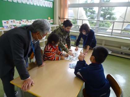 今日から新しく仲間入りした児童とすごろくをして数字について学びました。先生方も参加し、盛り上がりました。