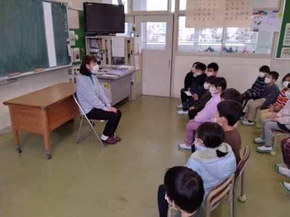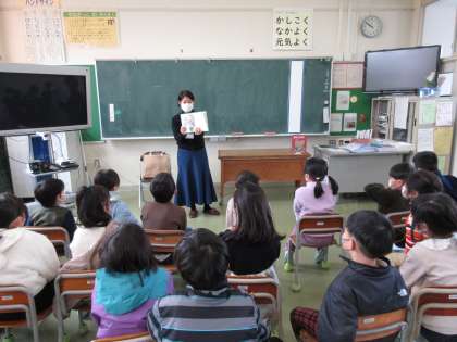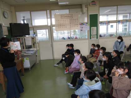 富山市立図書館の職員の方と、読み聞かせボランティアの方が、来校してくださいました。