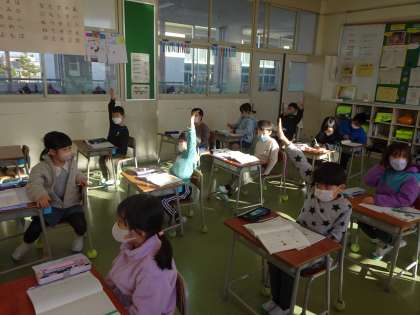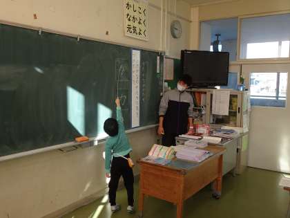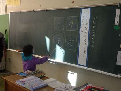 「カとか」「キとき」など似ているけど、違いがある字について、どこが違うのか発表しました。意欲的に学びました。