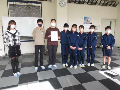 運営委員会の子供たちは、回収した書き損じはがきを富山ユネスコ協会の方に手渡しました。