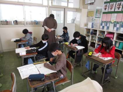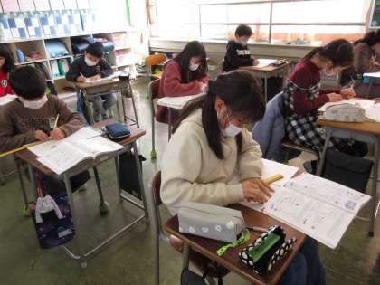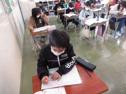 あまりが出ないように計算します。ということは、答えに小数点がつきます。位取りを間違えないように気を付けて取り組みました。